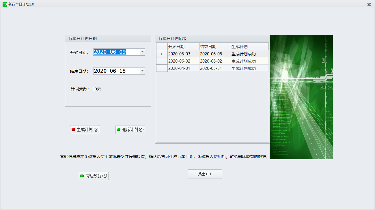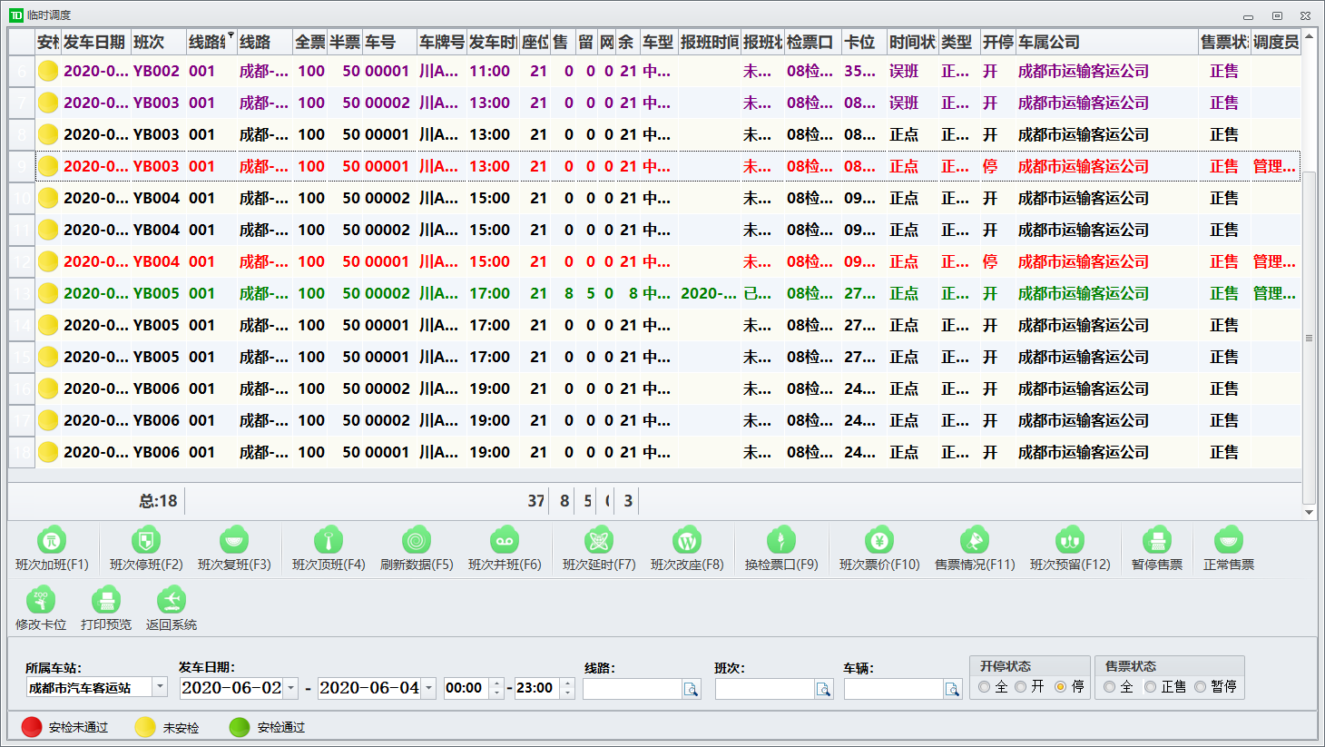 系统根据车站实际情况,自动生成出每天的营运计划, 也可以临时调整计划班次, 停班、复班、延时、连续加 班等一键完成方便快捷,支持线路预售天数和总体预售天数相结合每条线路预售天数可以个性化设置,并带有员工操作日志记录可以查询。