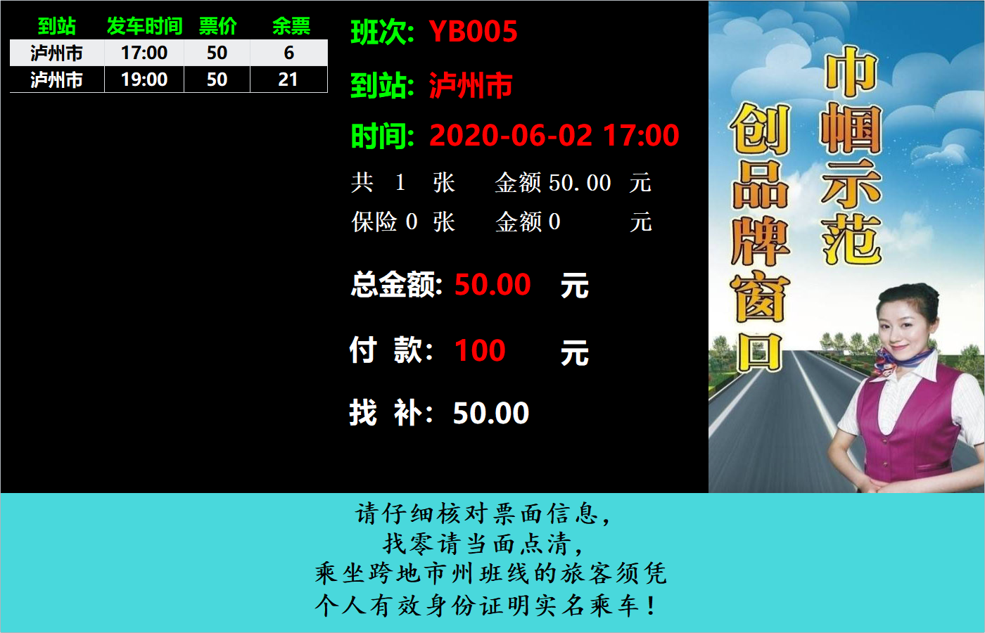 售票窗口双屏显示,旅客方便查看需要的班次、票款、找补信息。